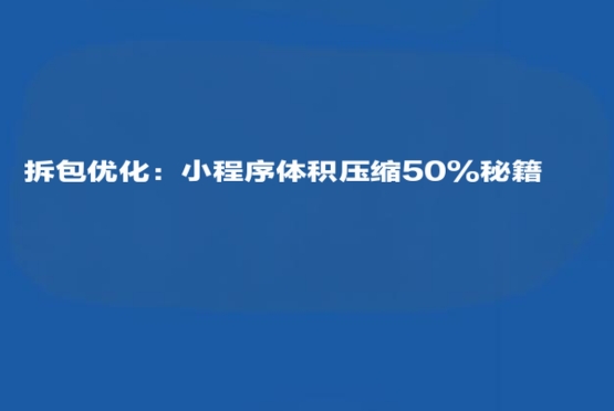 隨著小程序功能日益復雜,體積膨脹成為影響用戶體驗的關鍵瓶頸。超限警告、加載緩慢、用戶流失...這些痛點如何破解?小程序拆包優(yōu)化正是解決之道。本文將手把手教你通過系統(tǒng)化的小程序體積壓縮策略,輕松實現50